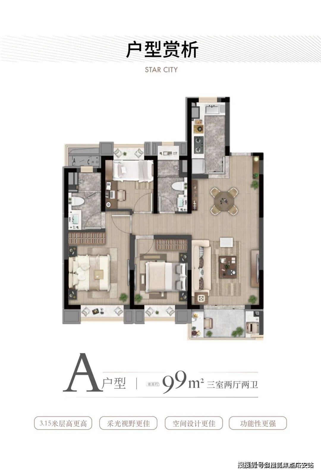 3房功能性,让自住客户一步到位,也让该产品进入二手市场后具备降维打击的优势!