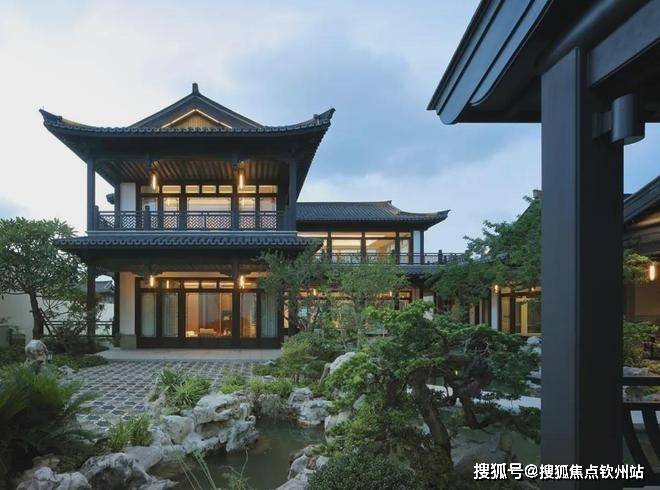 (500-1674㎡):采用铝构现代材料与传统中式戗角造型,搭配“流动景观”庭院与双观景露台,将山景引入室内