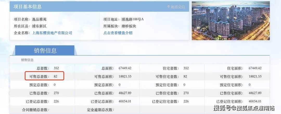 上海网上房地产显示,目前项目在售房源82套,超过总房源数的23%。未售房源中包括顶层约713平方米的超大户型以及大户型底墅。