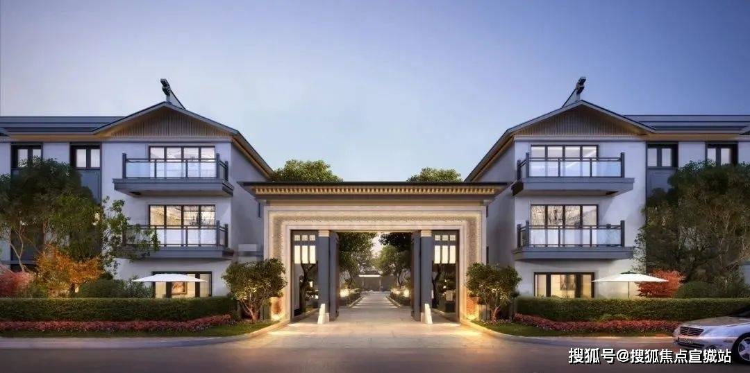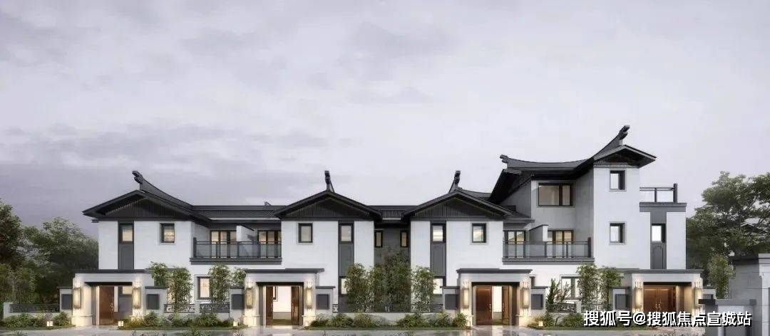 白墙黑瓦的视觉风格,中轴对称的大气格局,高地错落建筑造型,辅以亭台、叠水、乔木等中式景观布局,营造浓厚的中式宅院体验感。