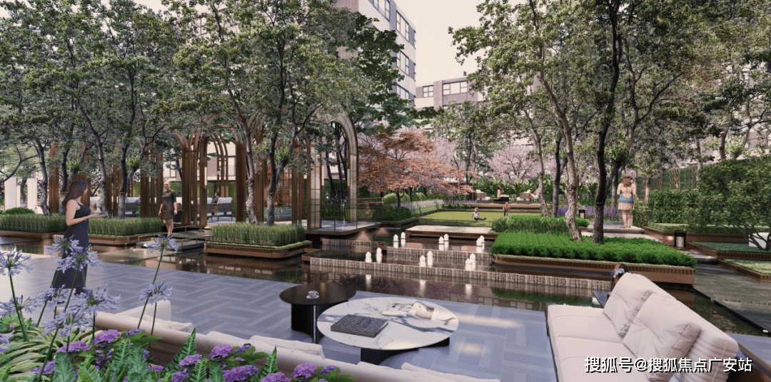 中心叠景水景花园巧妙搭配多品类植被,勾勒出一个富有层次感的“都会桃源”,精致,优雅的生活氛围随之铺展开来,漫步其间,仿佛置身于一幅流动的画卷,时光似乎也随之放慢了脚步。