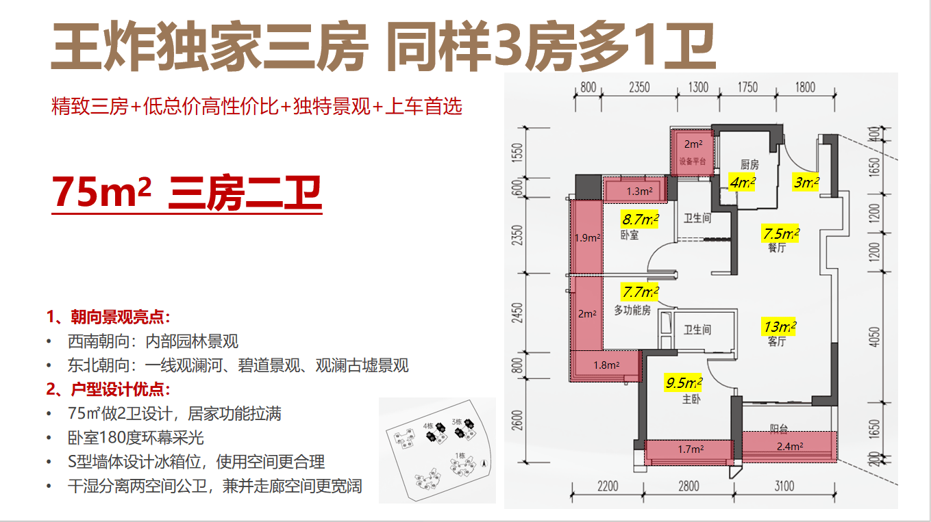 金光华溪山禾玺为观澜大布巷城市更新单元,位于观澜地铁站附近、观澜古墟西面,与观澜古墟相隔一条观澜河。项目总建面约120万方,是龙华新规产品楼盘,周边7大公园、观澜河玉带环腰,景观优越。楼盘分三期开发,规划有29栋住宅、自带2所幼儿园、1所九年一贯制学校、三层集中商业、写字楼、历史文化公园等,业态以住宅为主,居住氛围纯粹。在售产品全部为新规户型住宅,实用率约100%,在售户型有约75 - 85㎡3房2卫、约94 - 105㎡4房2卫;全部精装交付,中央空调、品牌厨卫、收纳齐全,置业更省心。75㎡3房2卫290万起、94㎡4房2卫368万起、105㎡4房2卫445万起。