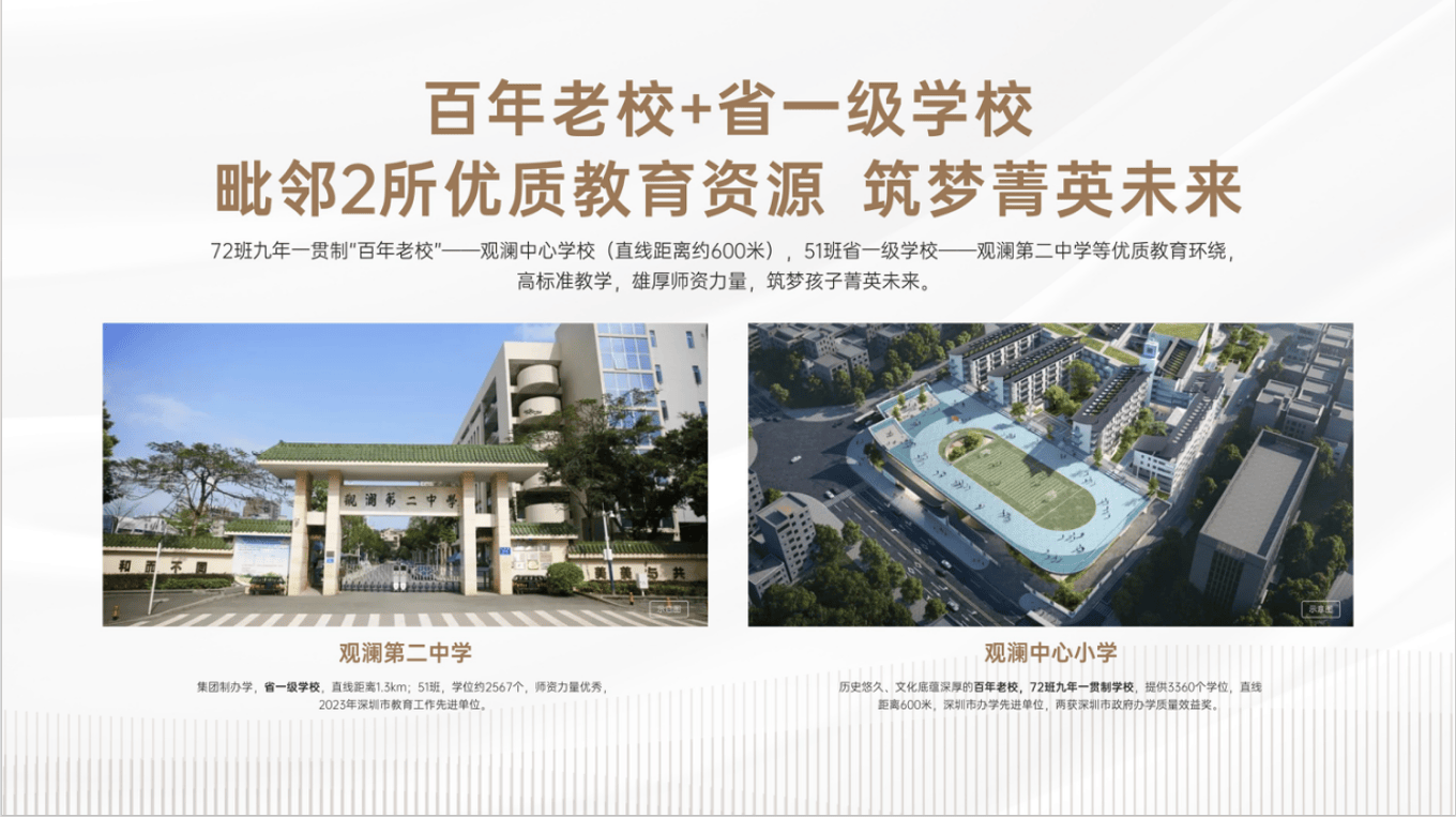 项目的品质打造也十分出色。它是观澜小区带泳池的项目,且打造了龙华首屈一指的奢华大门(约50米宽),从细节处彰显品质。同时,楼盘分三期开发,规划有29栋住宅、自带2所幼儿园、1所九年一贯制学校、三层集中商业、写字楼、历史文化公园等,业态以住宅为主,居住氛围纯粹,社区内完善的配套设施能够满足居民日常生活的各种需求。