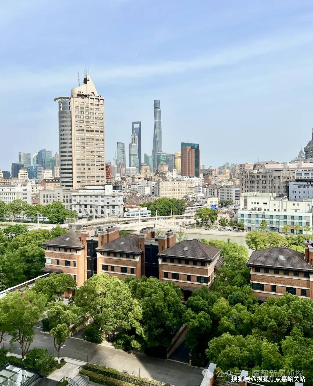 又比如宝格丽酒店旁的华侨城苏河湾88号院,即使是40层的超高层,低区视野依旧一览无余,因为前排是联排别墅和成片的历史风貌区,视野一览无余: