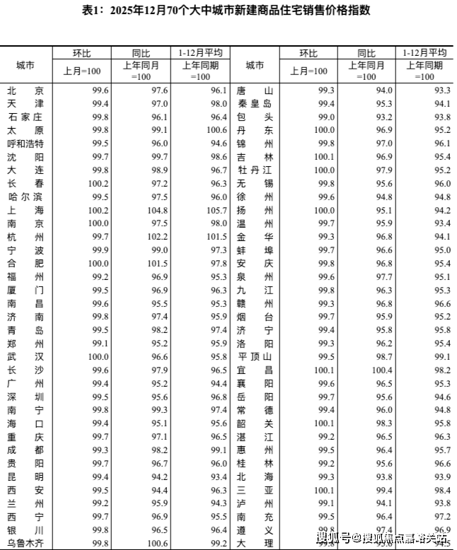 国家统计局公布的数据显示,2025年12月份,70个大中城市商品住宅销售价格环比总体下降、同比降幅扩大。
