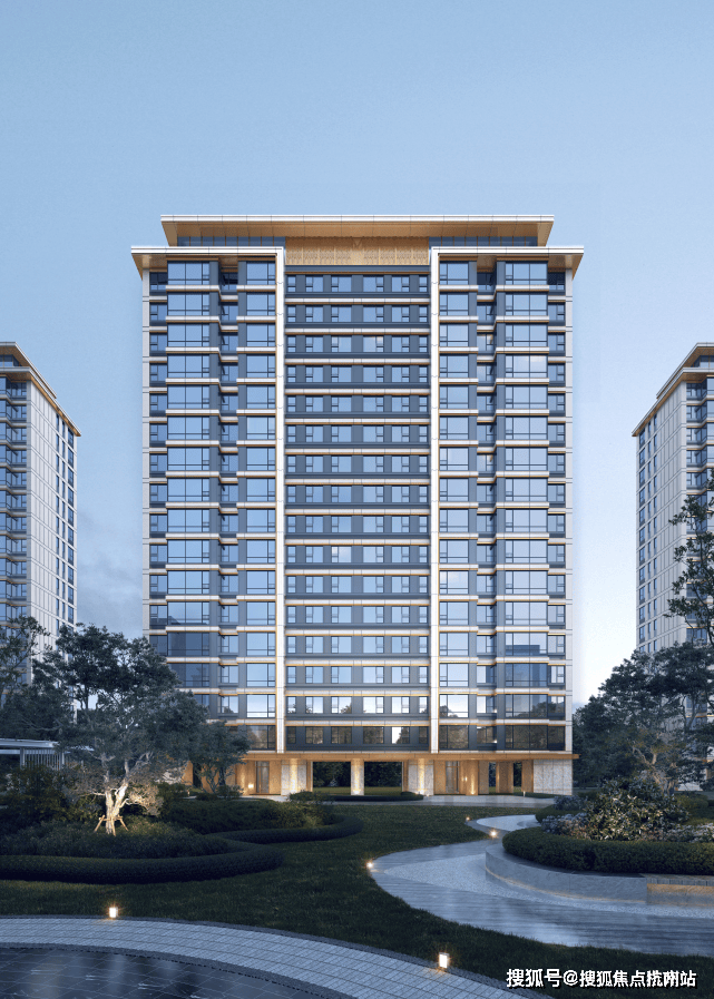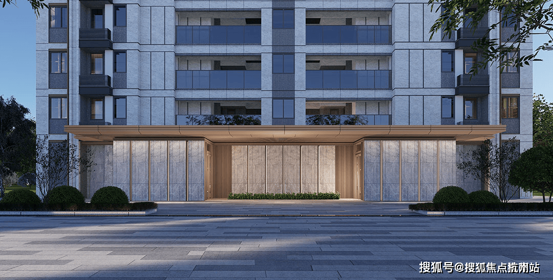 建筑风格遵循少即是多的设计理念,现代而又简约:立面利用大面积玻璃窗+仿石多彩漆,局部层间金属线条,并在首层基座采用人造石材和铝板等装饰材料,提升了建筑整体感和精致度。顶层外挑飘板使得建筑立面体块清晰,层次丰富。